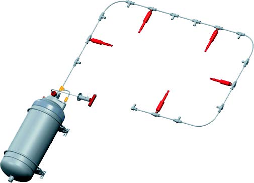 自动灭火装置安装在车辆上,对要防护区域进行保护,能监测被防护区域,当区域内发生高温火情后能自动启动装置或手动启动装置,喷洒灭火剂,进行降温灭火,装置无电源,无电器元件,管路常态下无压力,车辆维修时可随时拆装装置,装置安装位置不得影响人员正常乘坐及物料装卸,配备满足灭火区域的雾化喷头数量,对防护区域进行无死角喷射覆盖。罐体装置采用不锈钢材质,带有压力表能时时观察装置状态,罐体瓶头操作采用铜制材料,更加稳定可靠。装置管践系统,在常态下均无压力,采用不锈钢管现场根据设备进行定型安装固定,探测管路与喷酒管路独立安装,互不影响自动灭火装置适用于防爆电动车及柴油机防爆无轨胶轮车。