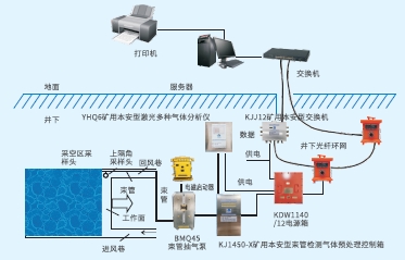 矿井火灾束管监测系统在国内、外众多矿井火灾束管监测系统的优点的基础上研发的一套集计算机技术、网络技术、信息技术、控制技术、智能技术和矿山气体发火、爆炸性分析、预警和发布自动化系统。系统采用激光检测技术,监测方式为24小时实时监测。系统的核心是JSG10矿井气体实时出测主站,此主站工作方式是:通过井下的束管采样泵和分路采样控制电磁阀及少量的束管、除水器、滤尘器等这些气体采集取样部件,将监测点的气体采样到实时监测主站中,然后全自动、实时分析井下CO、CO2、CH4、02、C2H4、C2H2、C2H6N2、SO2、H2S等10种气体组分,工作人员亦可实时观测。